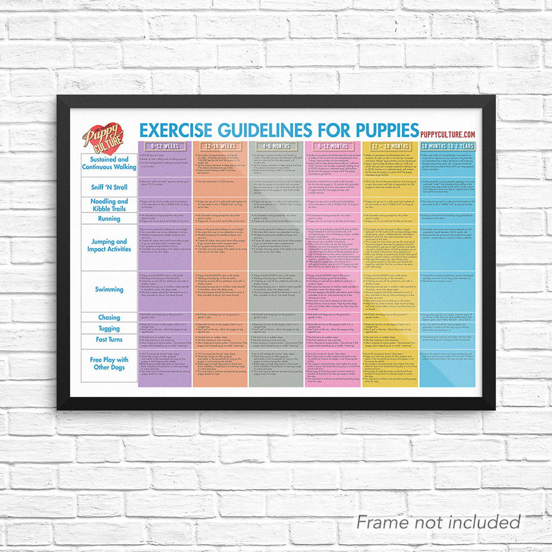 The Puppy Culture Exercise Poster is a great way to present all the exercise guidelines from our best selling Exercise Booklet.